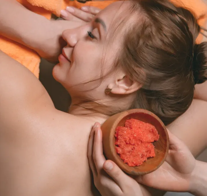После нанесения мастер обернёт вас в простынь и проводит в душ, чтобы смыть скраб и подготовиться к следующему ритуалу