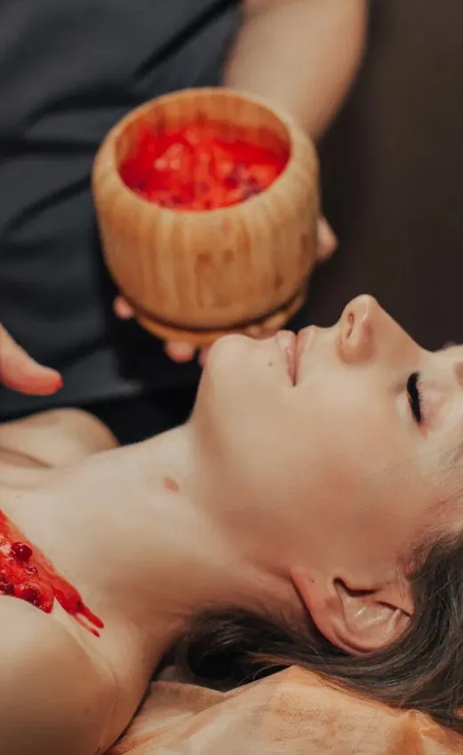 Ягоды брусники, малины, черники создают яркий и приятный аромат в течение всей процедуры, что помогают погрузиться глубже в атмосферу расслабления